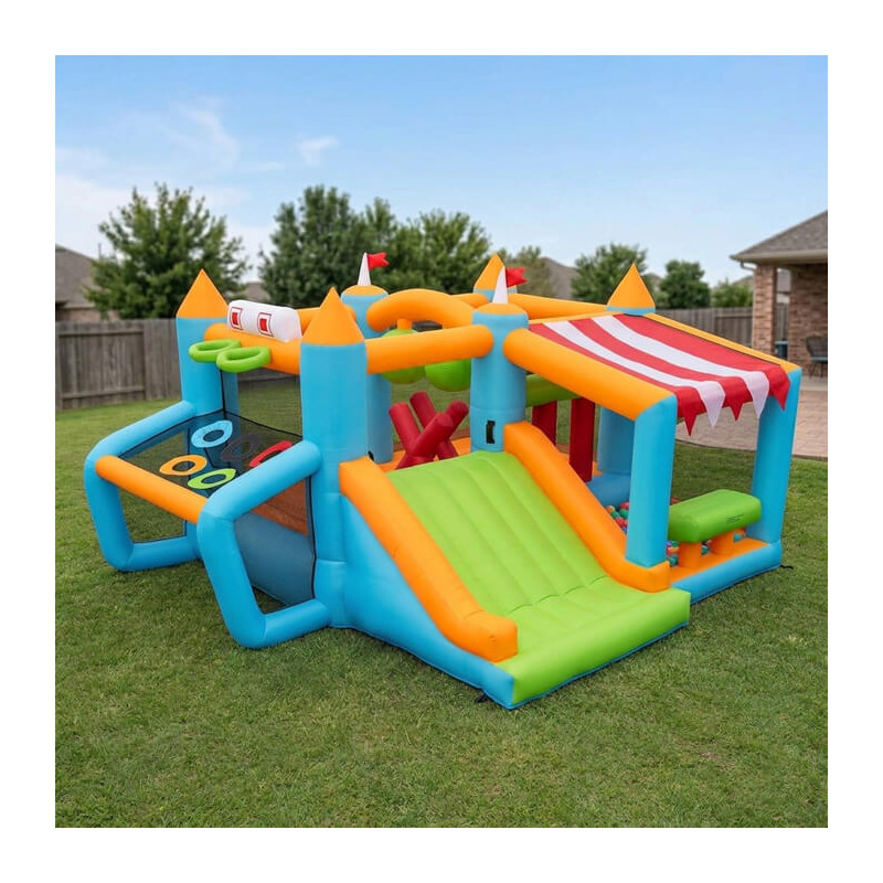 Ko organizirate rojstni dan za aktivnega otroka, ki obožuje šport in izzive, želite igralo ki ponuja več kot samo skakanje. Napihljiva igrala Adrenalinski Grad so zasnovana kot pravi športni poligon, kjer otroci premagujejo boxing ovire, zabijajo koše, dosegajo gole in se spuščajo po toboganu. Ta napihljiv grad ni le igralo - je adrenalinsko doživetje, kjer otroci razvijajo koordinacijo, ravnotežje in tekmovalnega duha.
