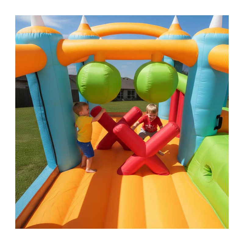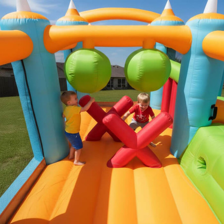 Napihljiva igrala Adrenalinski Grad so polna športnih elementov, ki otrokom omogočajo različne vrste aktivnega gibanja: